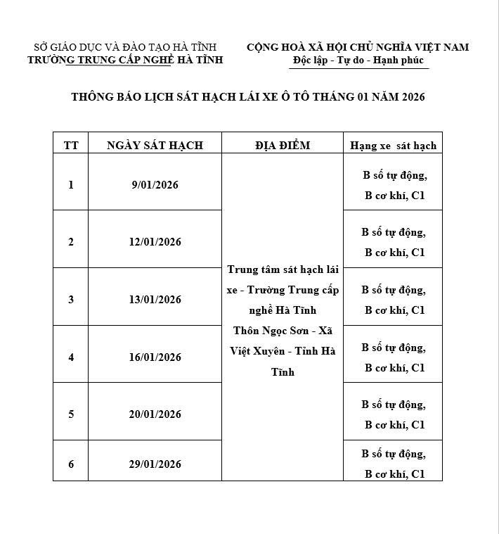 - THÔNG BÁO LỊCH SÁT HẠCH LÁI XE Ô TÔ THÁNG 12 NĂM 2025