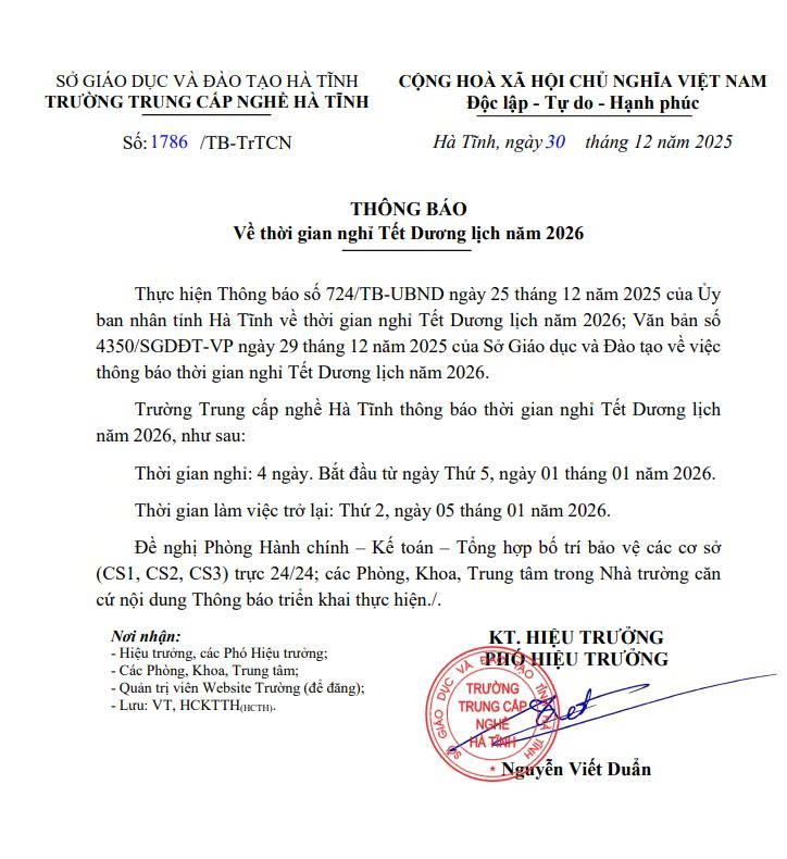 THÔNG BÁO NGHỈ TẾT DƯƠNG LỊCH 2026